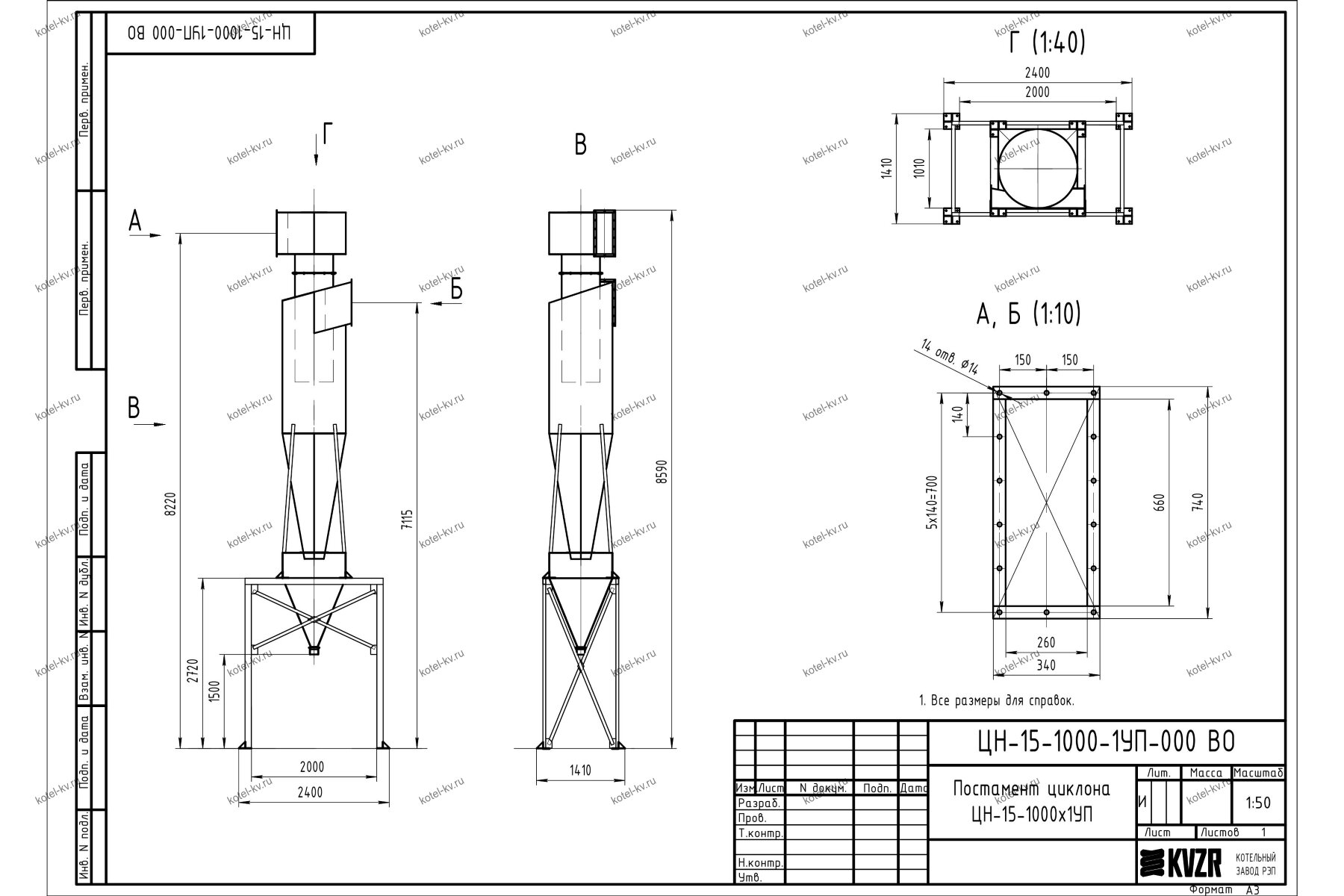 Постамент служит для установки циклона на требуемую высоту для удобной выгрузки сыпучих частиц. Изготавливается индивидуально, в зависимости от технического задания заказчика.